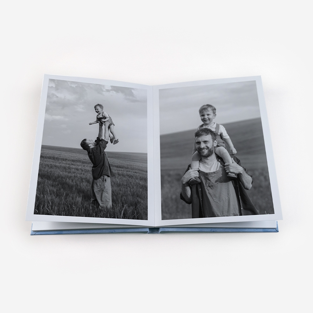 Os Álbuns de Fotos Dreambooks apresentam uma abertura panorâmica, com a possibilidade de colocar uma foto em destaque ocupando duas páginas. Desta forma, desfrutarás de uma visualização perfeita das tuas fotos, sem cortes ou partes escondidas.