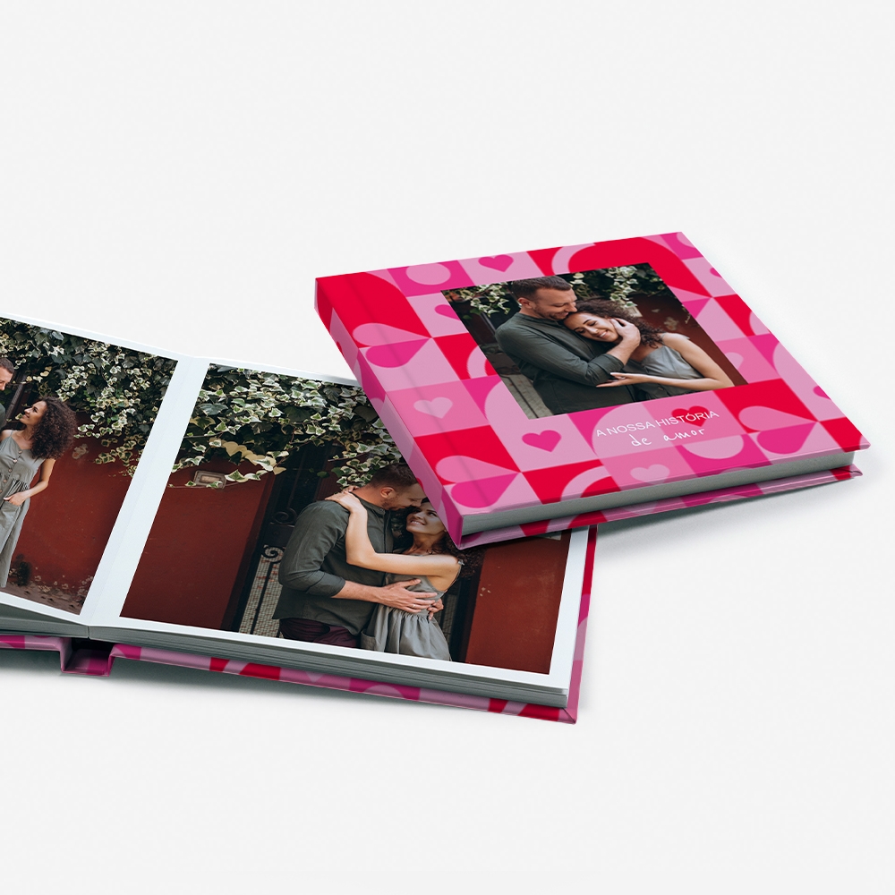 A capa rígida em cartão duro oferece proteção adicional e um acabamento elegante ao teu álbum.