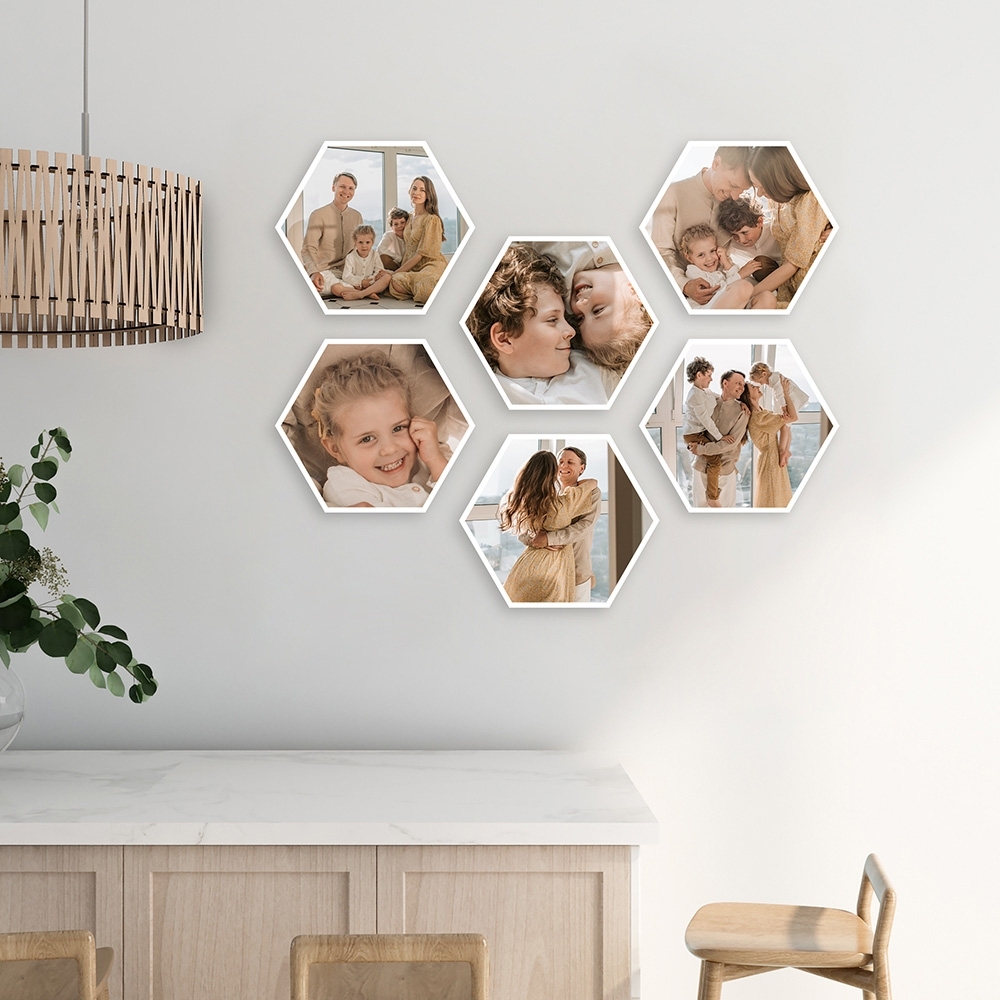 Escolhe entre o formato quadrado ou hexagonal e cria as tuas composições únicas e personalizadas com os Quadro Adesivo x UHU. Que tal transformar a parede da tua sala numa galeria de arte moderna, com um mural de fotografias das tuas viagens favoritas? Ou criar um ambiente acolhedor no quarto, com uma disposição de quadros que conte a história com a tua cara metade?