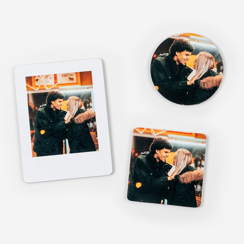 Fabricados em papel magnético de alta qualidade, os nossos ímanes garantem uma aderência firme e um acabamento nítido, perfeito para realçar as tuas memórias com cores vibrantes e detalhes incríveis.